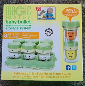 Introduce 1 new food each 4 days. Upto 15 Discount Deal on Magic Bullet Baby Bullet Food Storage System It is the best chance to take huge savings on Magic Bullet Baby Bullet Food Storage System purchase. Turn family dinner into babys dinner make an entire weeks worth of healthy all-natural baby foodin less than 5 minutes. This compact and convenient storage tube fits easily into any nappy bag or purse. Magic Bullet Baby Bullet Storage System 8 Piece Set New Opened. Start with single-ingredient purees using simple low allergy foods. Magic Bullet Baby Bullet Food Storage System 8 Piece Set NIB Bonus 313628861261.