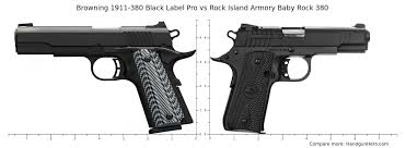 The Browning 1911-380 also has a much more aggressive grip tang than the Rock IslandBoth use an extended loop Combat Commander like hammer. It is not just a chopped off 1911. Small reliable and reasonably priced. A 1911 A1 chambered in and scaled to Brownings other cartridge. As far as shooting both did very well. The Rock Island Baby Rock is chambered in 380 ACP caliber and can hold up to 7 rounds of ammunition in its single stack box magazine. Accuracy was good on both as was trigger pull. It is definitely a shrunken 1911 however not with a barrel link. The Baby Rock is a shrunken 1911-style pistol chambered for the soft-shooting 380 ACP cartridge.