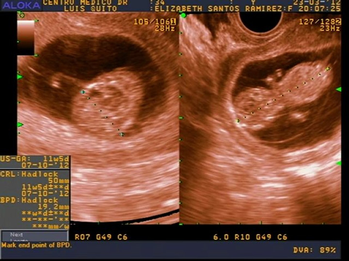 11 semanas de embarazo ecografia. Aunque todavía es pronto para distinguirlo en una ecografía el tubérculo genital se irá definiendo según tu bebé sea niño o niñaTu comenzarás a sentirte más aliviada con las náuseas y ya notarás una ligera curva en tu tripa. En la semana 11 de embarazo está terminando la etapa embrionaria y muy pronto pasará a la fetal. El objetivo principal de esta ecografía es confirmar el diagnóstico del embarazo su ubicación edad gestacional exacta o tiempo de embarazo y número de bebés.